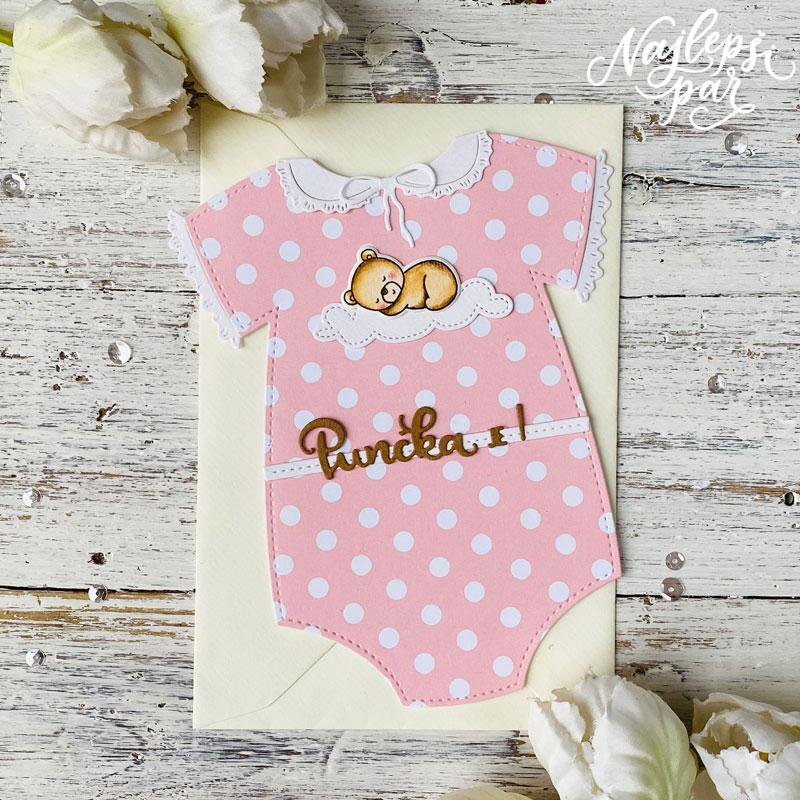 Za današnji voščilnici sem za osnovo uporabila rezalno šablono Otroški body…