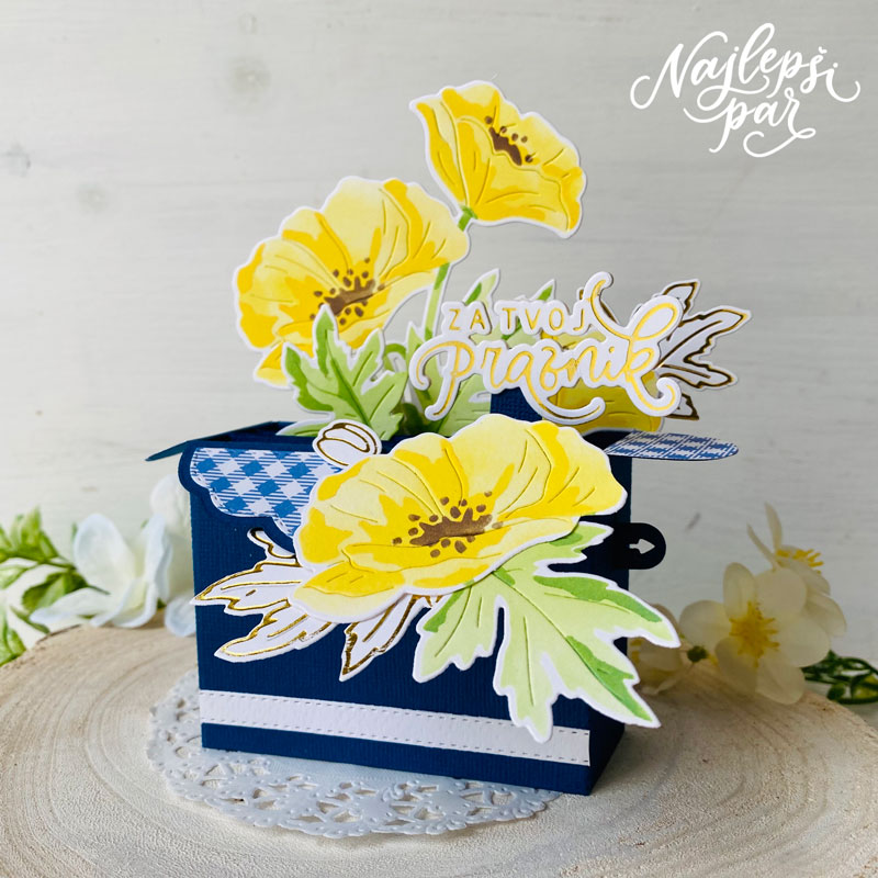 Rumeni mak je prejšnji teden krasil žepek s knjižnim kazalom, tokrat pa sem z njim napolnila interaktivno škatlico.