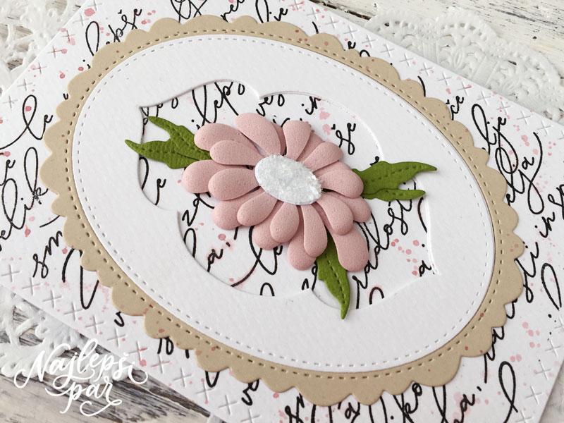 Ozadje sem poštempljala z voščilom (doma se ga je prijelo ime ‘ozadje alla Prešeren’ 😉 ) in našprickala z roza barvo.
