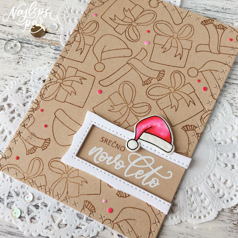 Za malce nagajivosti, sem okvir zamaknila čez rob in nato odrezala višek na desni strani…poveznila sem mu še kapico in dodala odtisnjeno voščilo.