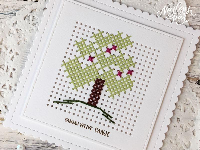 Danes z vami delim to ‘mogočno’ drevo, ki bo pomagalo uresničiti velike sanje 🙂 …ker je krošnja sestavljena iz src, bo verjetno še bolj pomagalo 😉 . Malce sem se namreč poigrala s klasičnim štikanjem pri deblu in cvetovih, hribček je nastal z nekaj linijami, krošnja pa iz sedmih štikanih src iz kompleta Šivanje.
