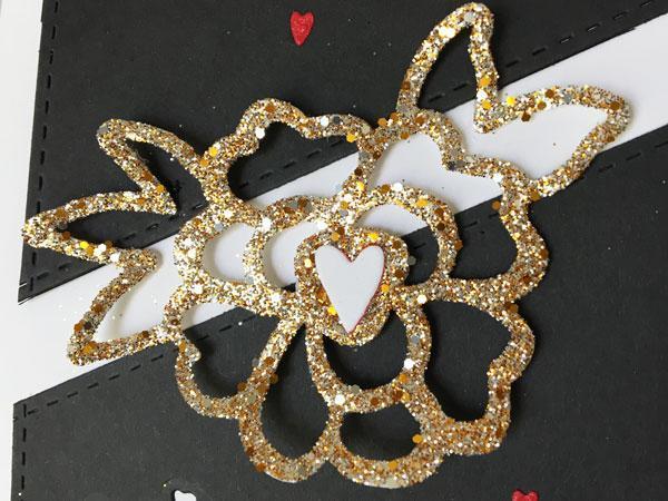 Krasno izpade zlat cvet z vsemi svojimi bleščicami in mali rdeči srčki tako fino poživijo vse skupaj. Lp